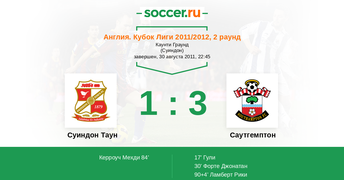 | Суиндон Таун | Саутгемптон | |