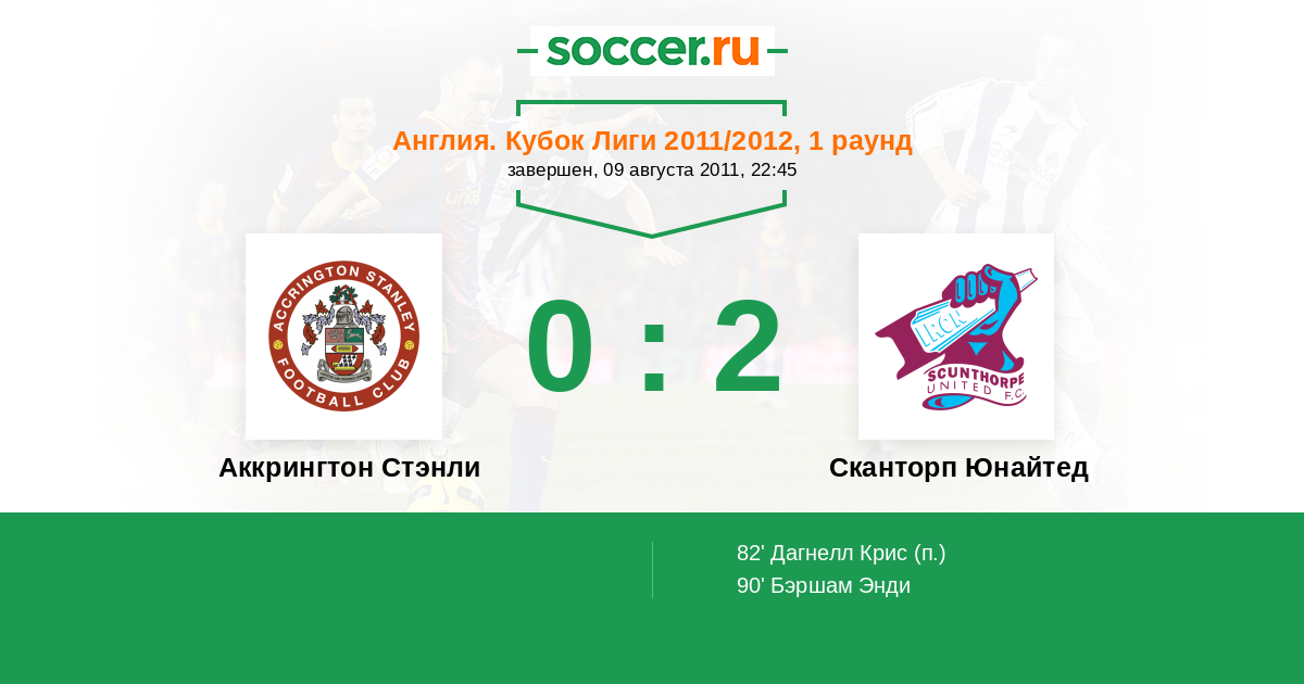 | Аккрингтон Стэнли | 5:6 | 3:4 | 2:2 |