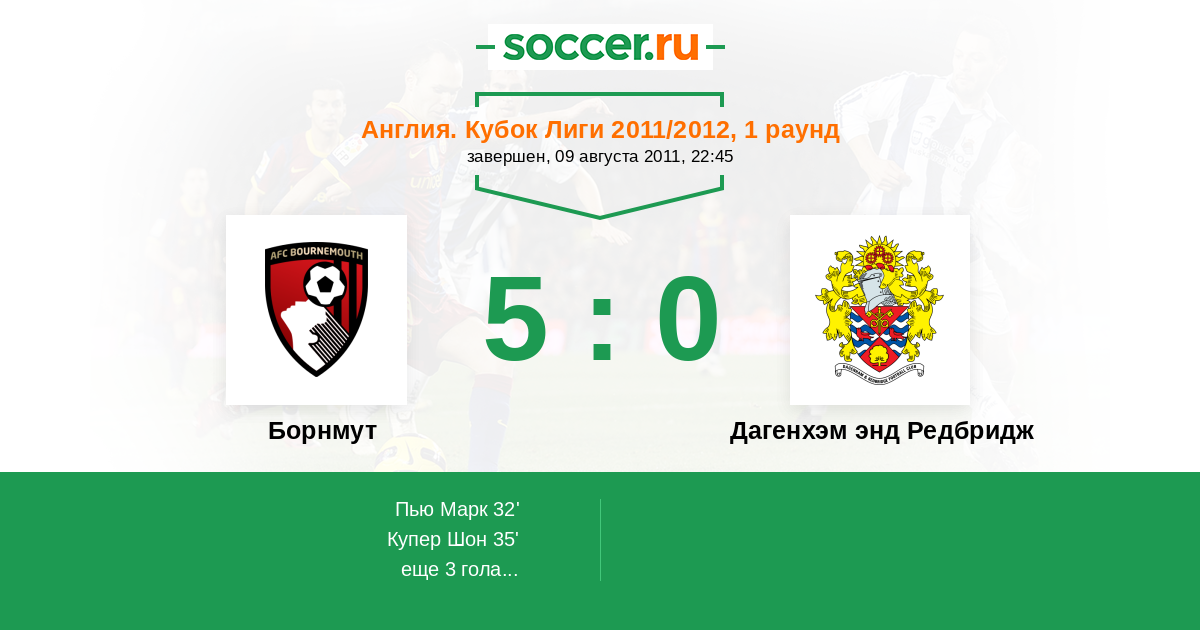 | Борнмут | Дагенхэм энд Редбридж | |