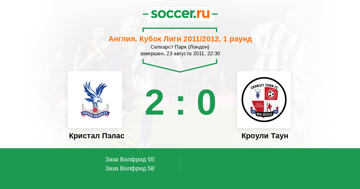 | Кроули Таун | 3:10 | 3:10 | 0:0 |