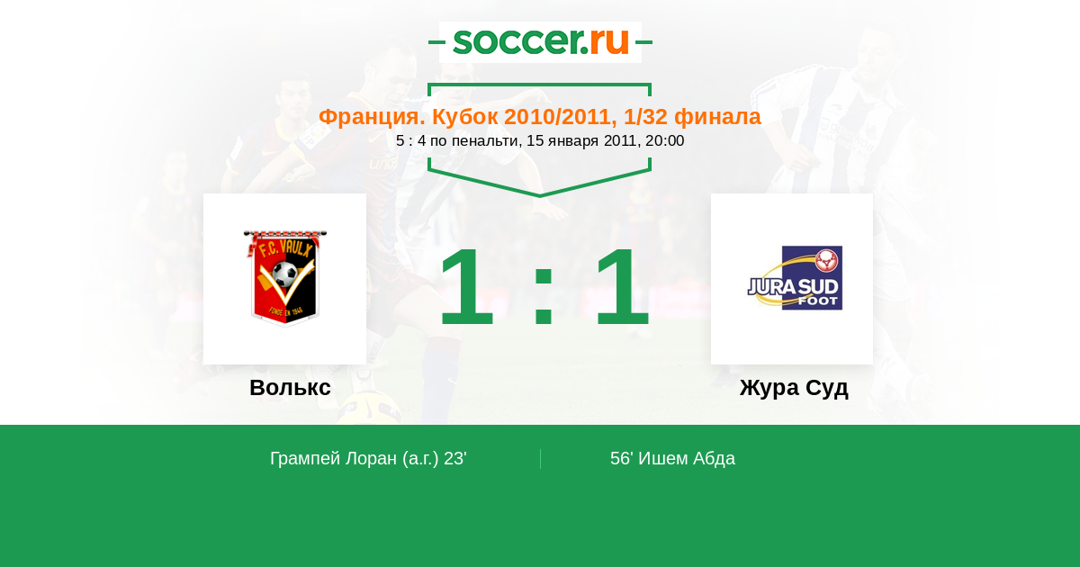| Волькс | 1:3 | 0:0 | 1:3 |