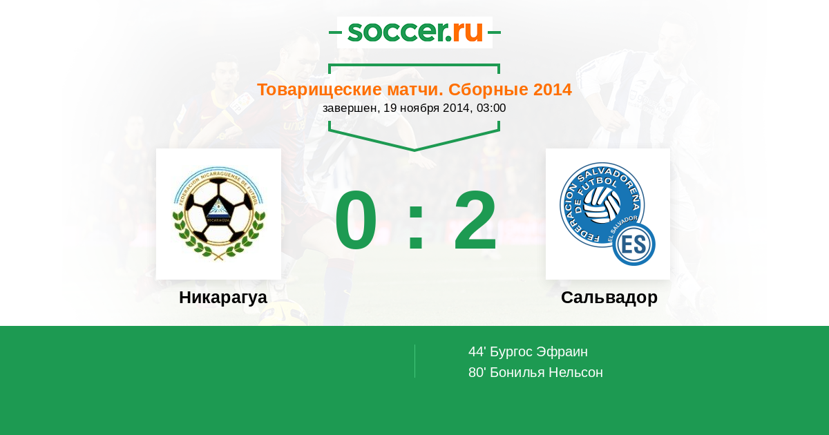 | Сальвадор | 1:2 | 0:0 | 1:2 |