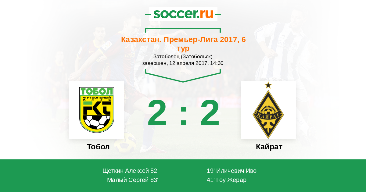 | Тобол | Кайрат | |