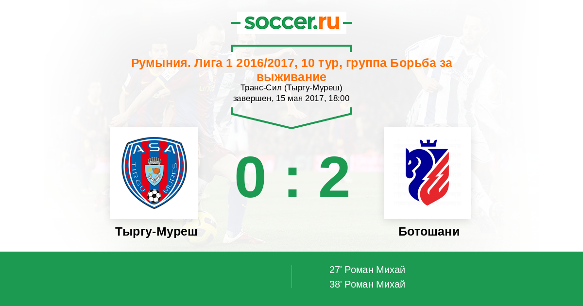 | Тыргу-Муреш | 6:7 | 3:0 | 3:7 |