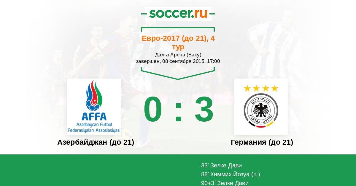 | Азербайджан (до 21) | 2:16 | 0:7 | 2:9 |