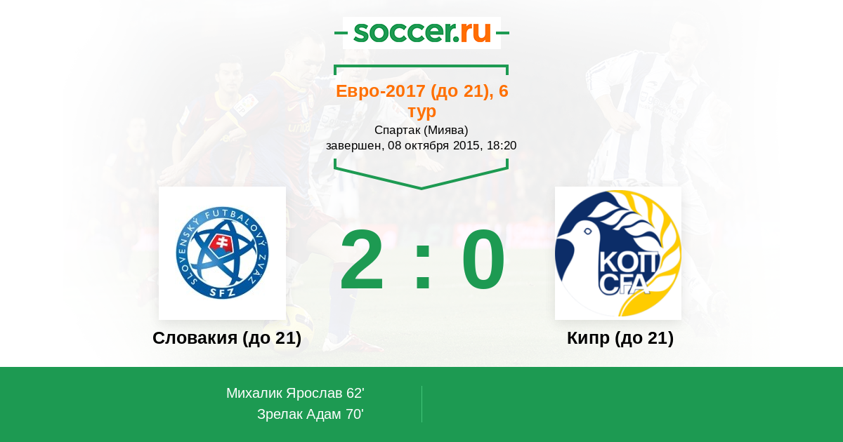 | Словакия (до 21) | 3:0 | 0:0 | 3:0 |