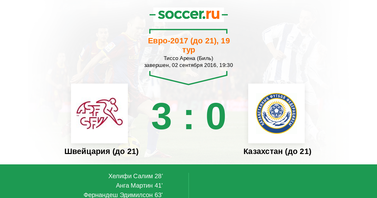 | Швейцария (до 21) | 1:0 | 0:0 | 1:0 |