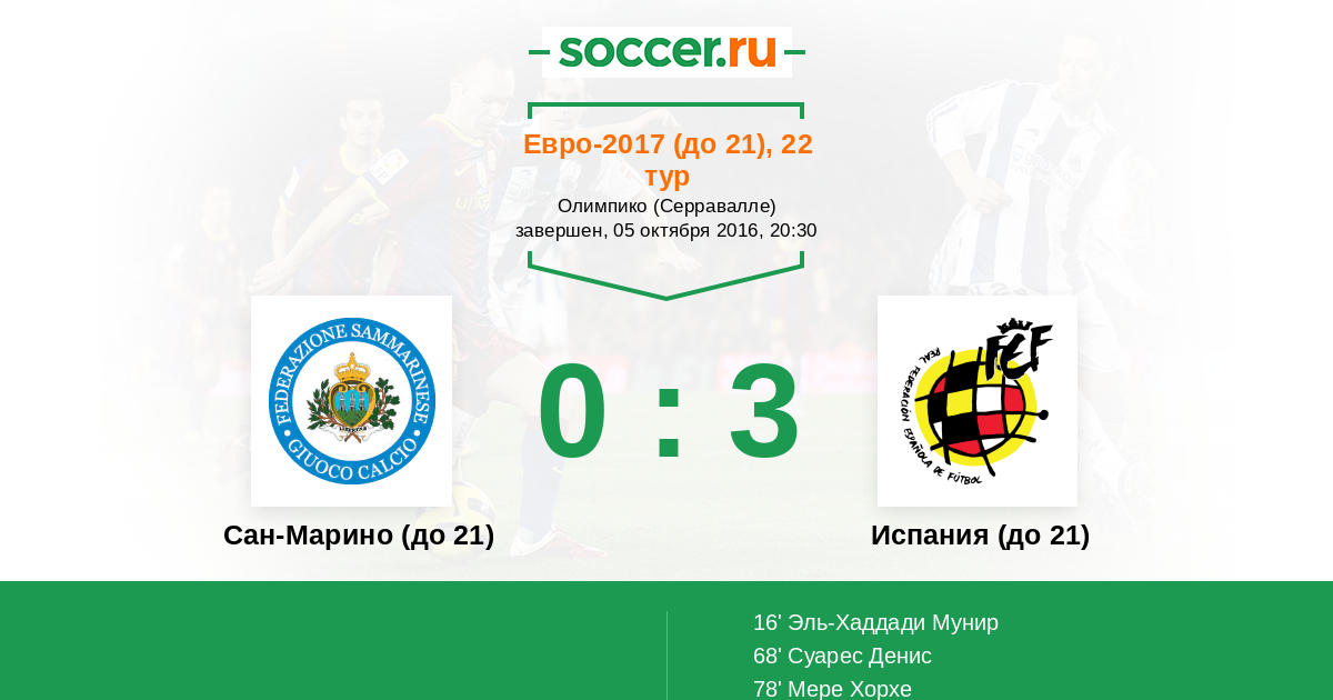 | Сан-Марино (до 21) | Испания (до 21) | |