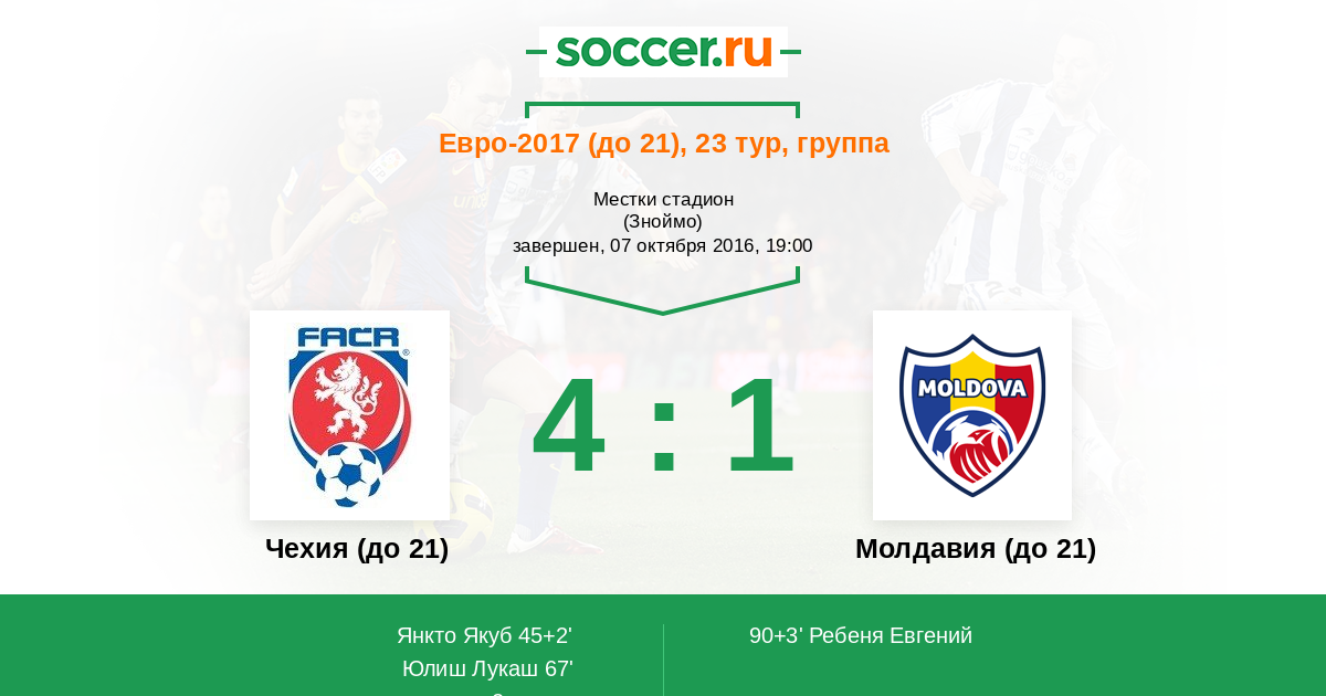 | Чехия (до 21) | Молдавия (до 21) | |