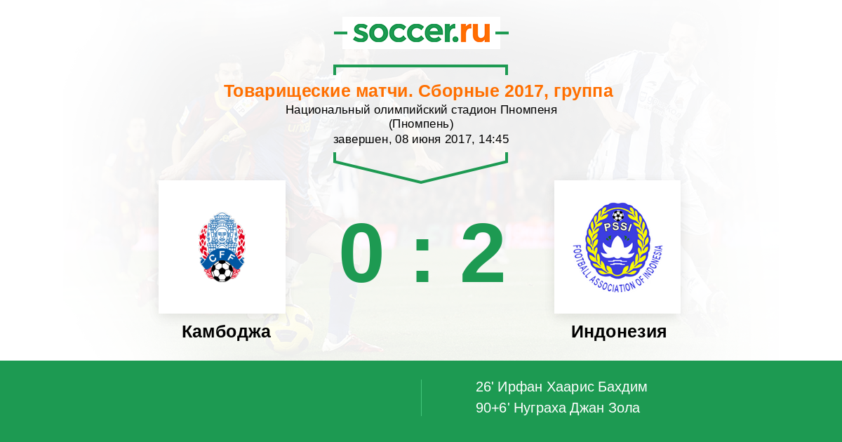 | Камбоджа | 0:1 | 0:0 | 0:1 |