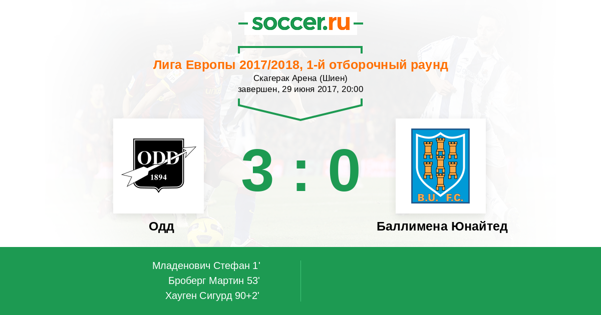 | Одд | Баллимена Юнайтед | |
