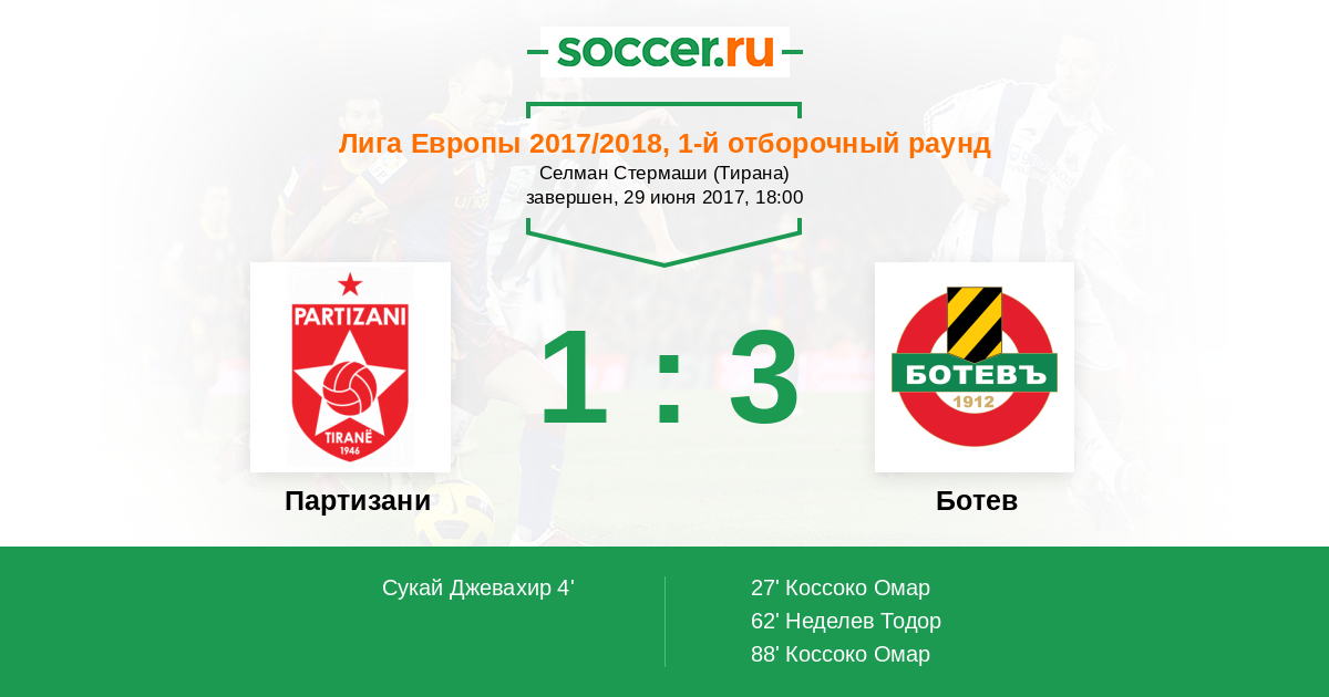 | Партизани | 0:1 | 0:0 | 0:1 |