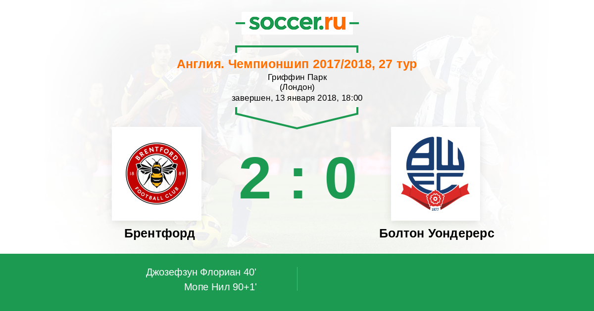 | Брентфорд | Болтон Уондерерс | |