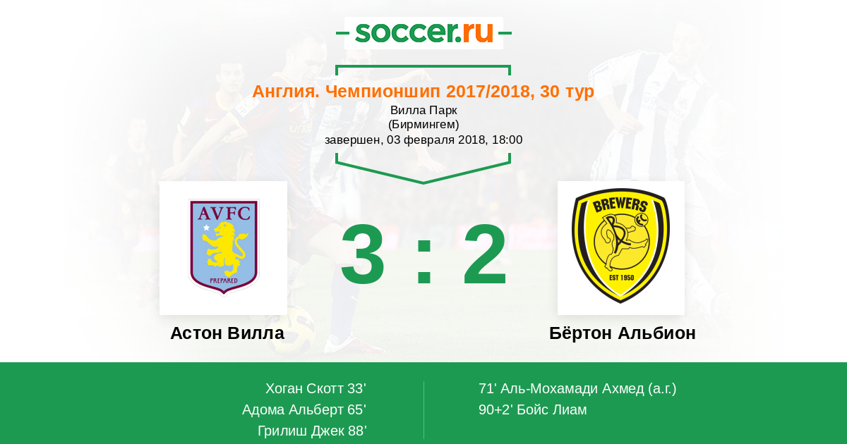 | Бёртон Альбион | 4:14 | 3:12 | 1:2 |