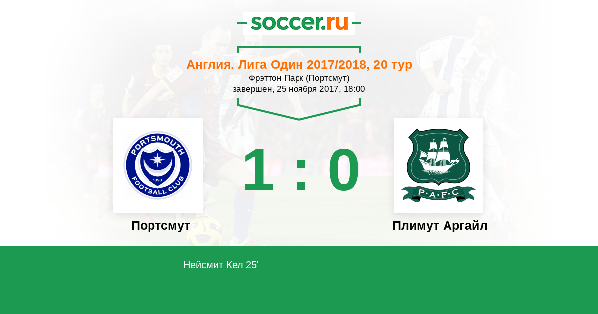 | Портсмут | Плимут Аргайл | |