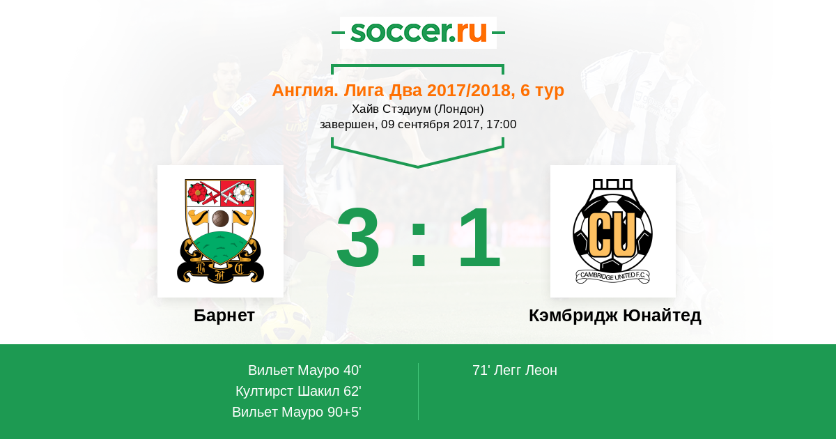 | Барнет | Кэмбридж Юнайтед | |