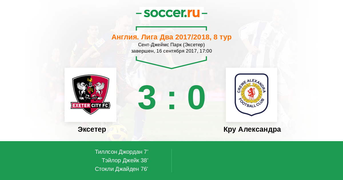 Эксетер 4:0 Кру Александра