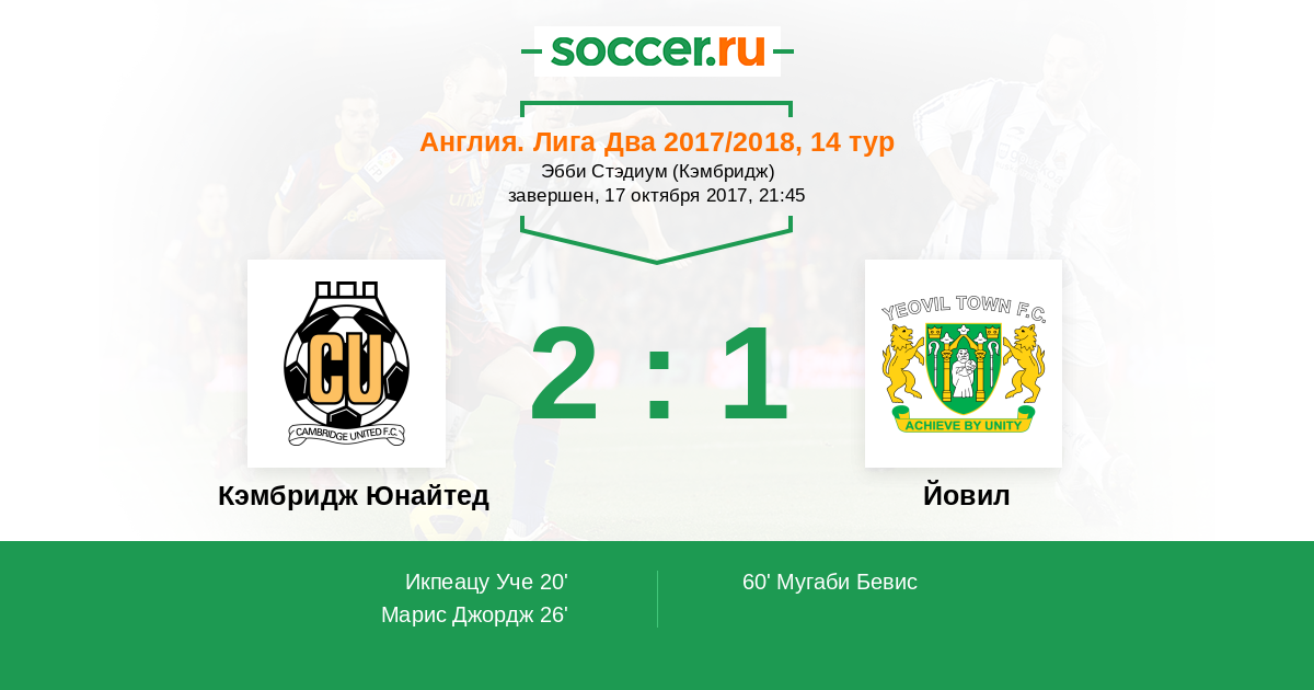 | Кэмбридж Юнайтед | Йовил | |