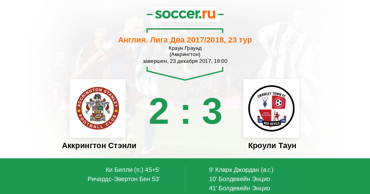 | Аккрингтон Стэнли | Кроули Таун | |