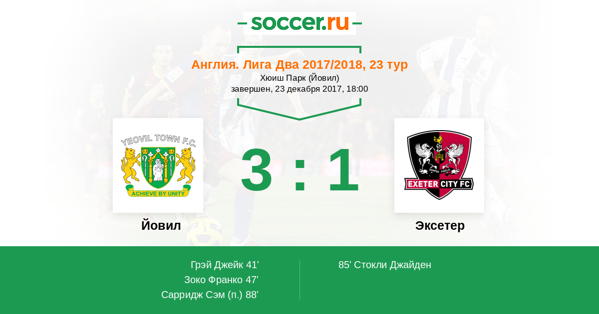 | Йовил | Эксетер | |