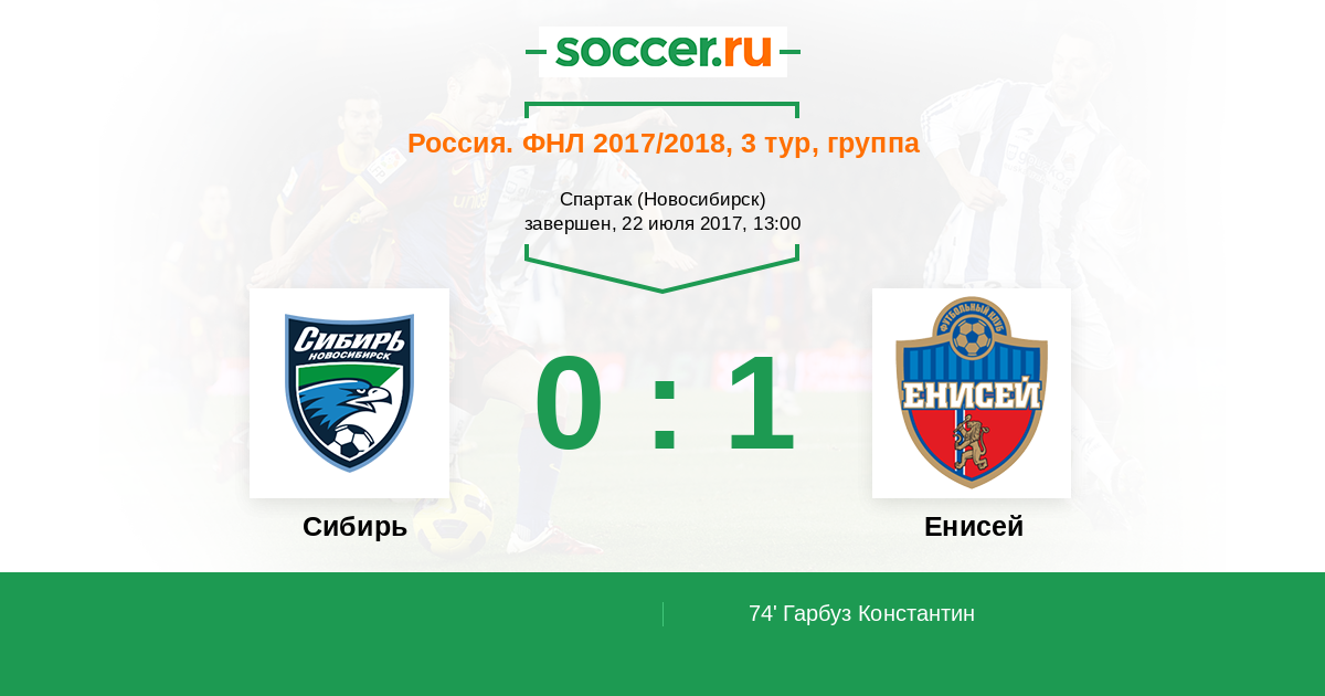 | Енисей | 19:15 | 13:10 | 6:5 |