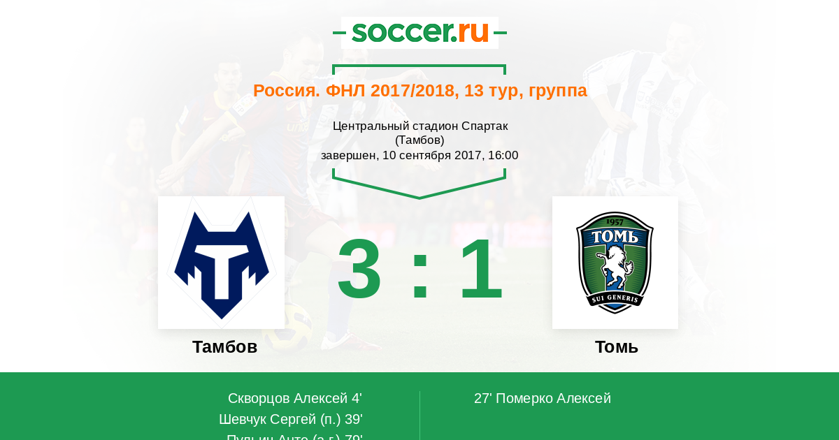 | Тамбов | 6:7 | 3:0 | 3:7 |