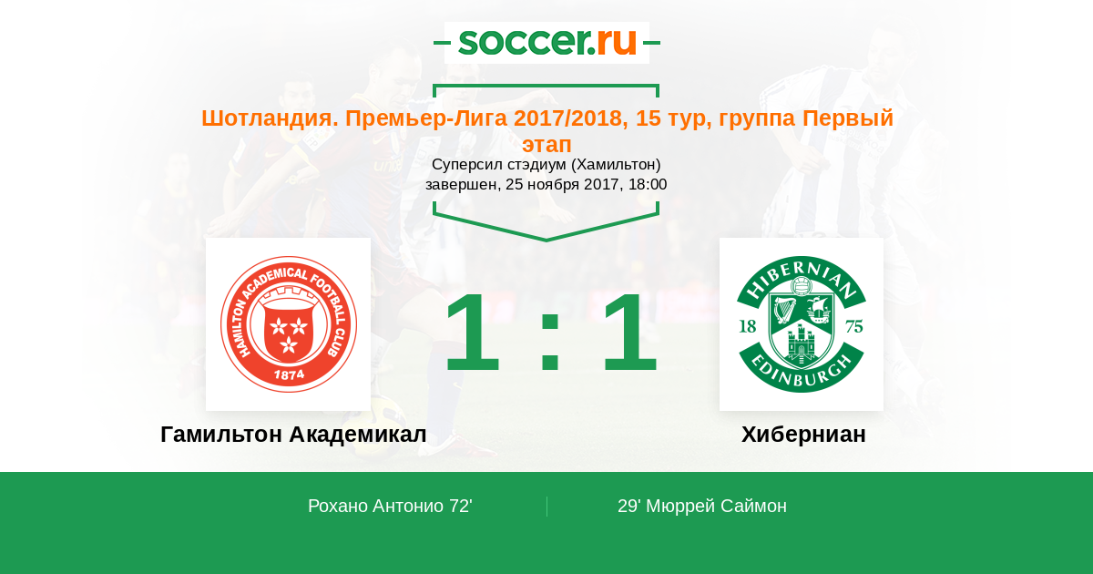| Гамильтон Академикал | 24:49 | 11:17 | 13:32 |