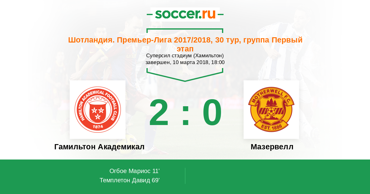 Гамильтон Академикал 2:1 Нью-Сейнтс