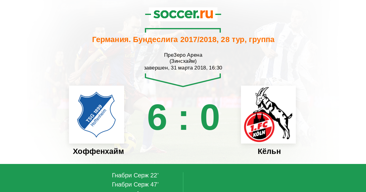 | Хоффенхайм | 53:36 | 27:18 | 26:18 |