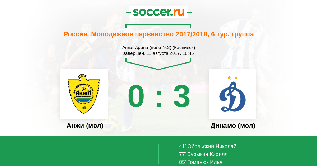 | Анжи (мол) | Динамо (мол) | |