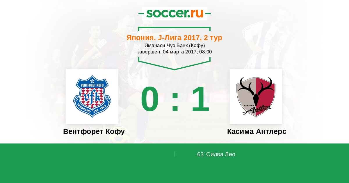 | Вентфорет Кофу | 0:3 | 0:0 | 0:3 |