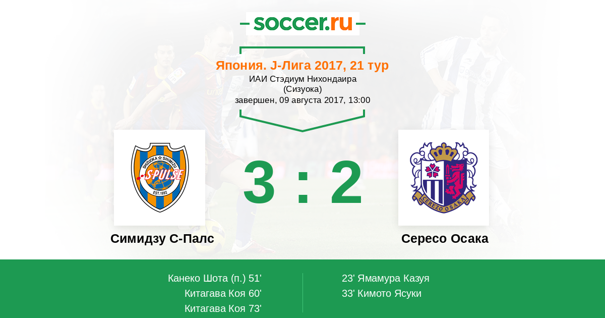| Симидзу С-Палс | Сересо Осака | |