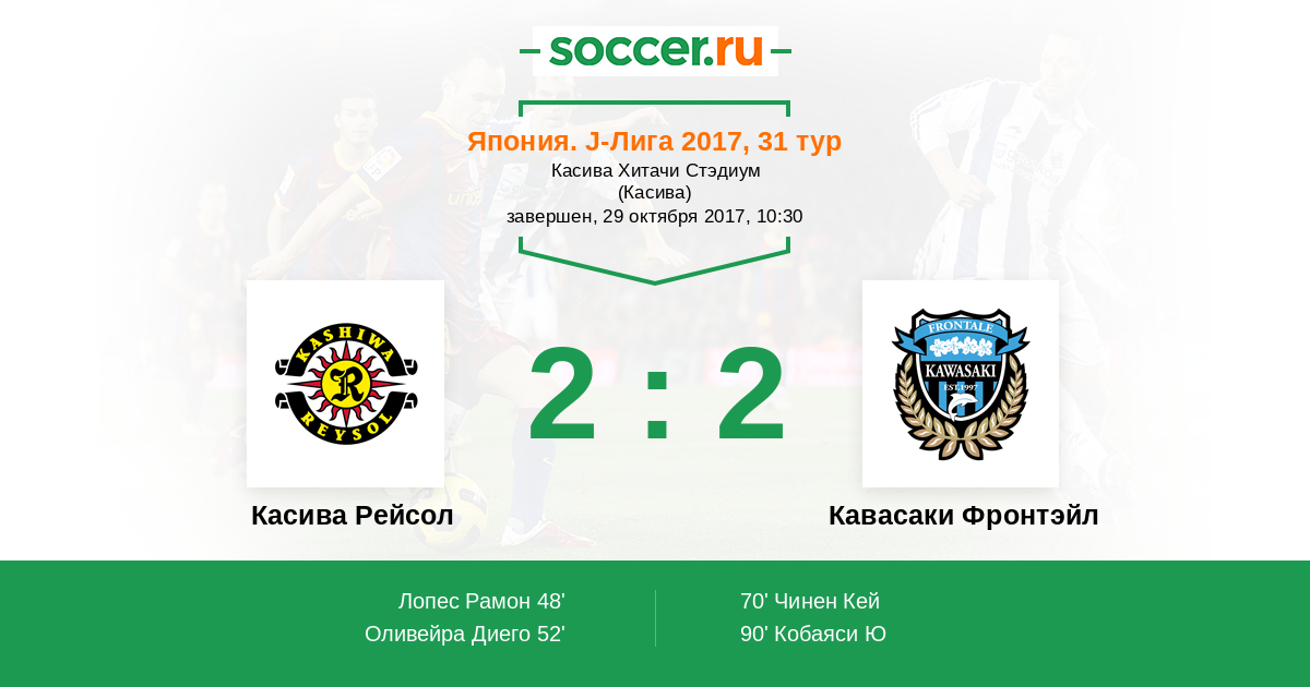 | Касива Рейсол | 59:66 | 30:27 | 29:39 |