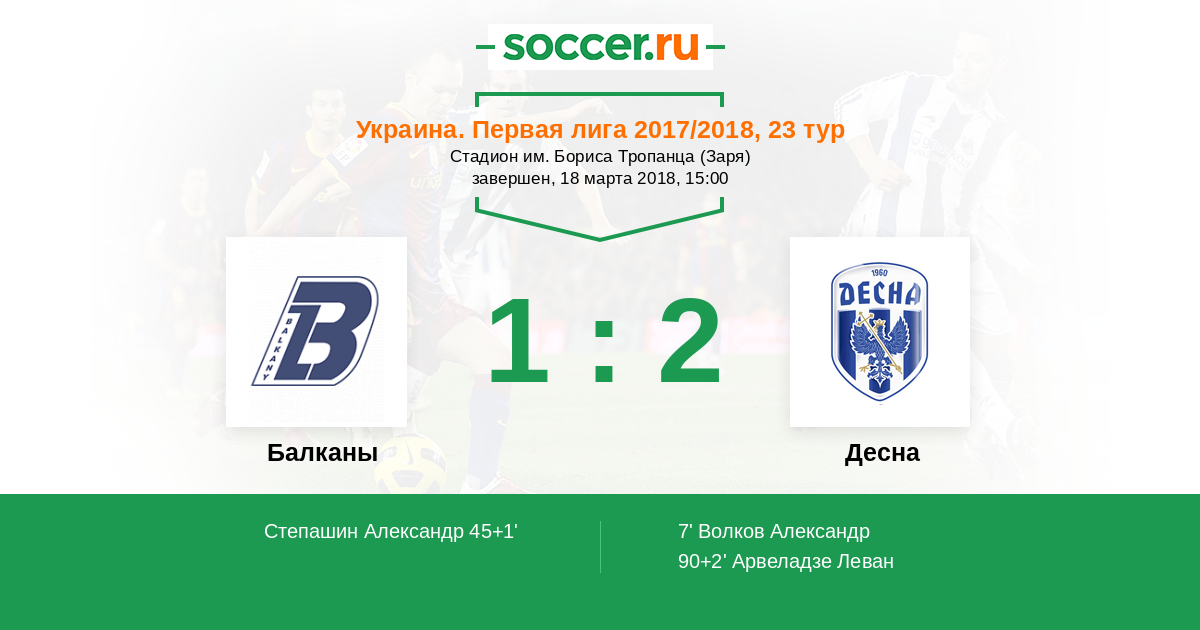| Десна | 6:0 | 6:0 | 0:0 |