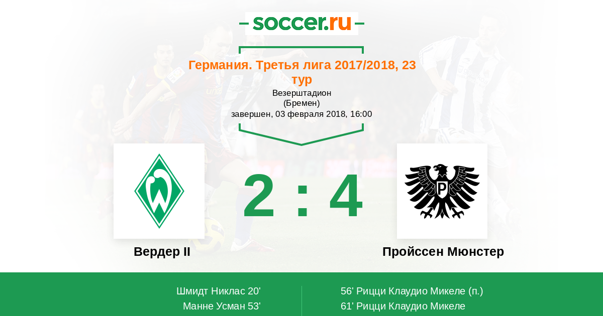 | Вердер II | Пройcсен Мюнстер | |