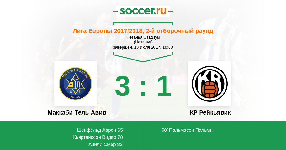 | Маккаби Тель-Авив | КР Рейкьявик | |