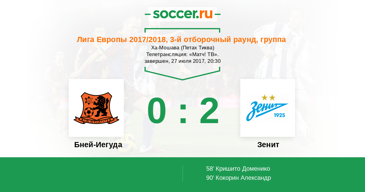 | Бней-Иегуда | Зенит | |