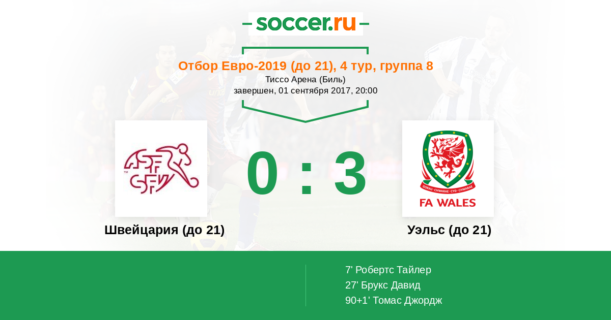 | Швейцария (до 21) | Уэльс (до 21) | |