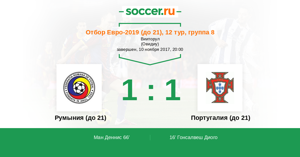 | Португалия (до 21) | 1:3 | 1:3 | 0:0 |
