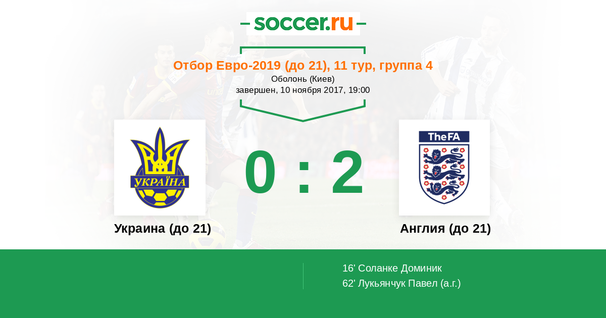 | Украина (до 21) | 5:6 | 3:2 | 2:4 |