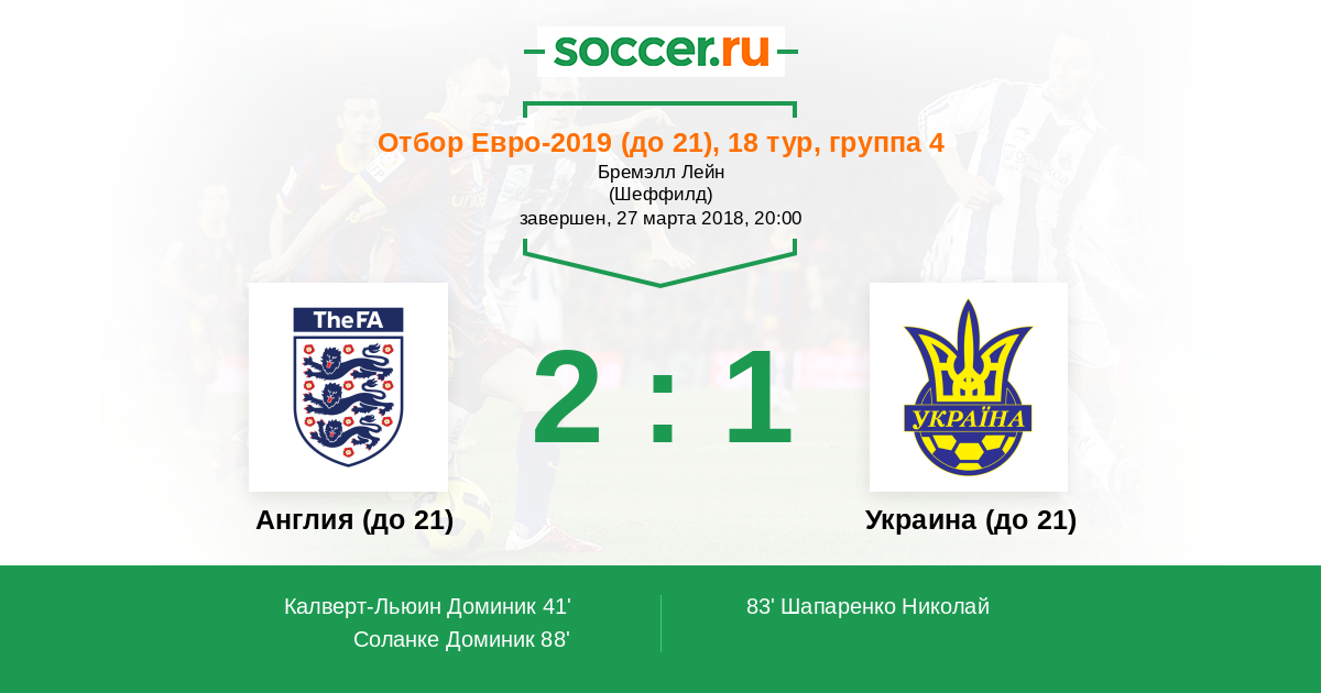 | Англия (до 21) | 6:4 | 2:1 | 4:3 |