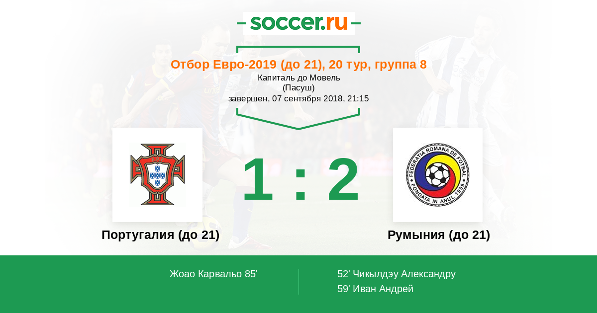 | Португалия (до 21) | 1:2 | 0:1 | 1:1 |