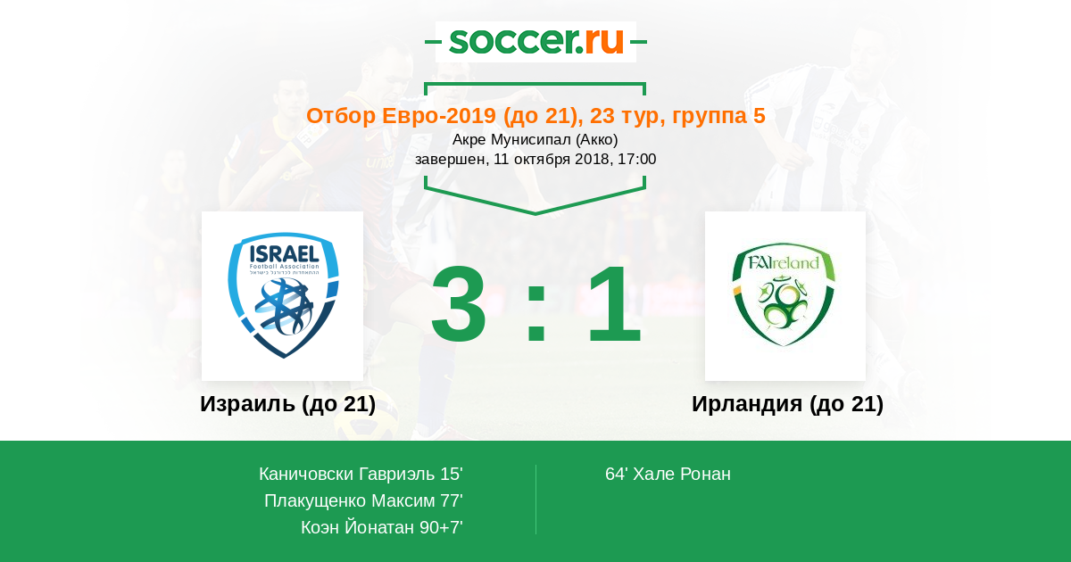 | Израиль (до 21) | 1:5 | 0:0 | 1:5 |