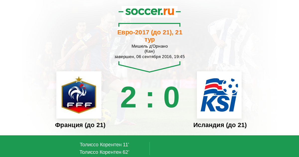 | Франция (до 21) | Исландия (до 21) | |
