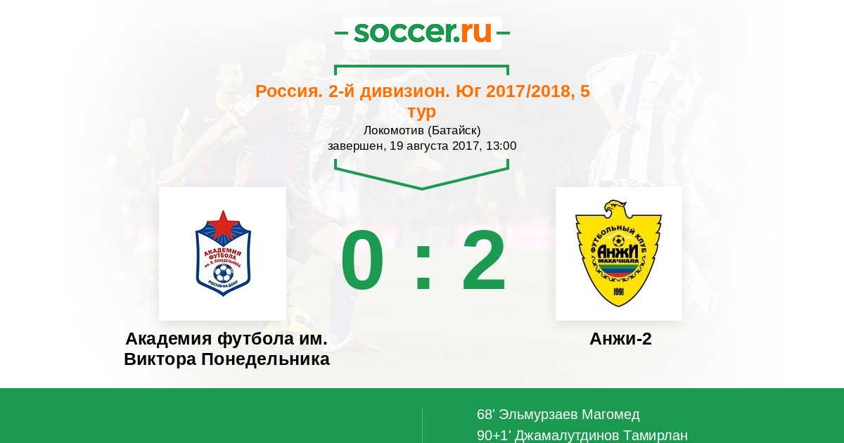 | Академия футбола им. Виктора Понедельника | Анжи-2 | |