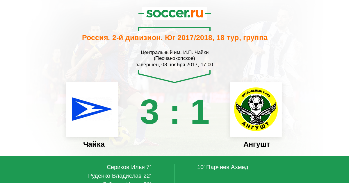 | Чайка | 17:3 | 6:1 | 11:2 |