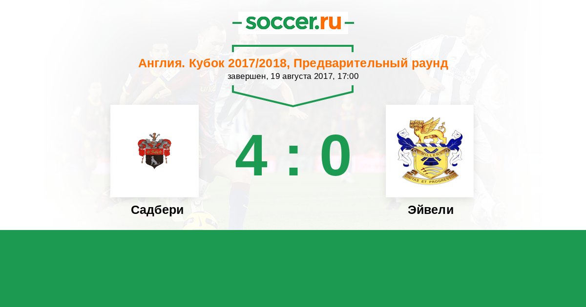 | Эйвели | 2:1 | 0:0 | 2:1 |