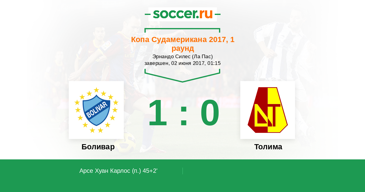 | Боливар | 1:2 | 0:0 | 1:2 |