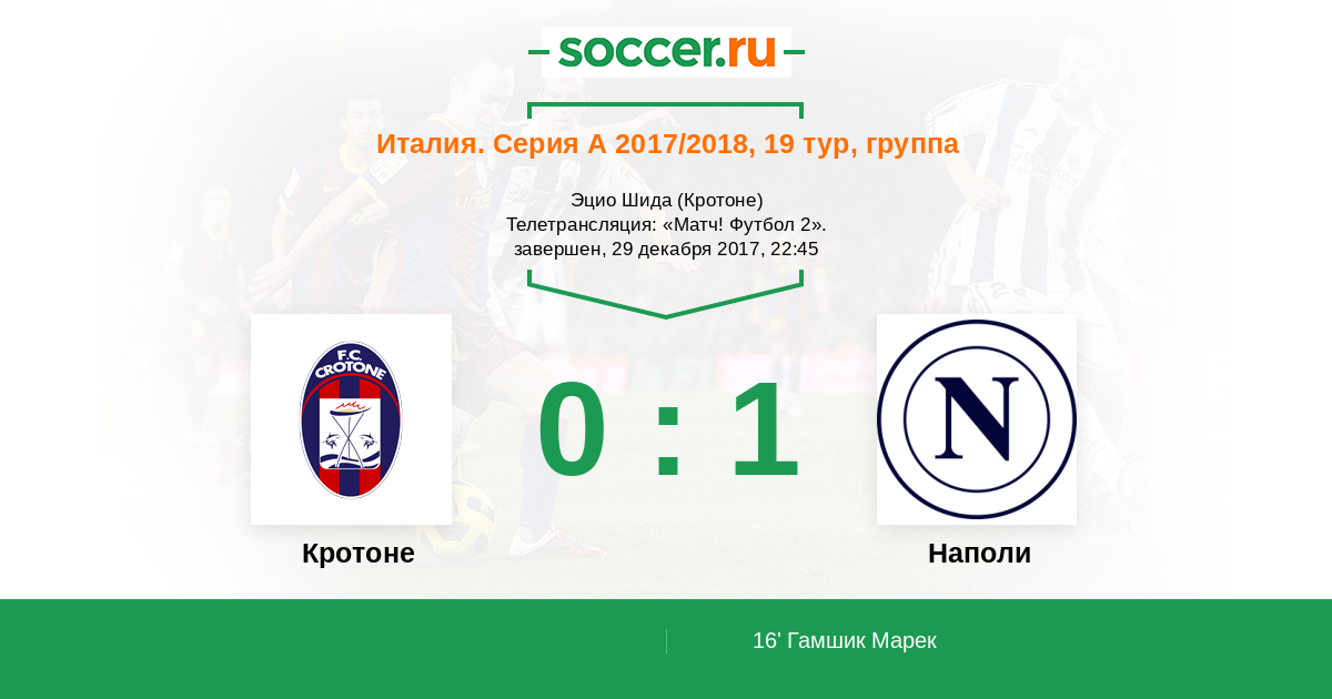 | Кротоне | 8:19 | 4:9 | 4:10 |