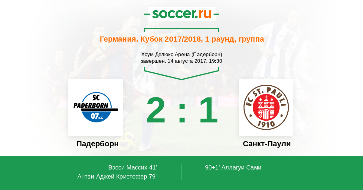 | Падерборн | 40:39 | 21:14 | 19:25 |